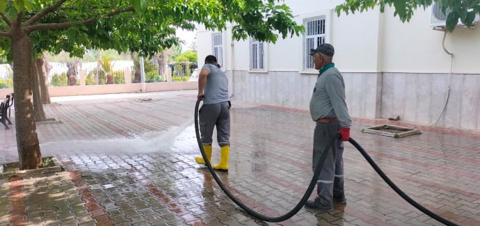 Kemer Belediye ekipleri, Ramazan Bayramı öncesinde ilçedeki camilerin içi ve dışında temizlik çalışması yaptı.
