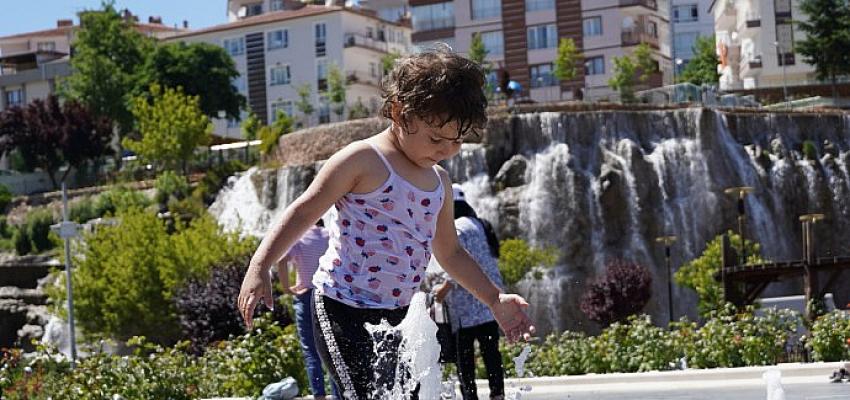 Keçiören Türk Dünyası Su ve Gül Meydanı’nda bulunan ‘ıslanma havuzu’ havaların ısınmasıyla birlikte çocukların serinleme…