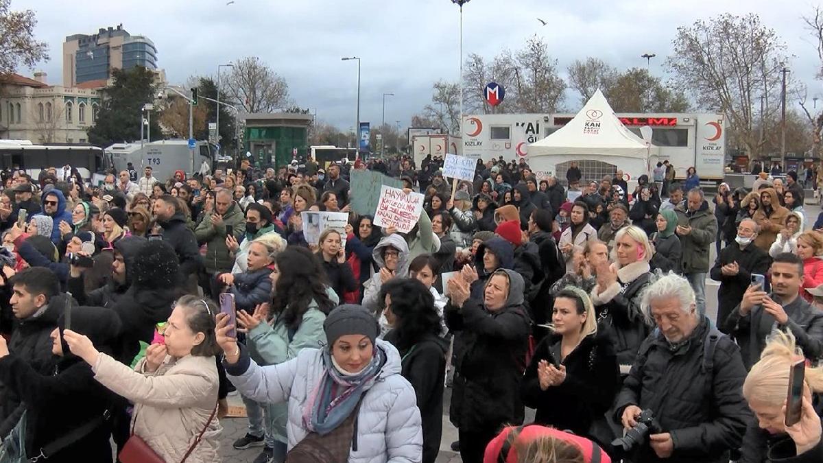 Kadıköy'de hayvana şiddet ve barınakların durumuna reaksiyon gösteren hayvanseverler hareket gerçekleştirdi.