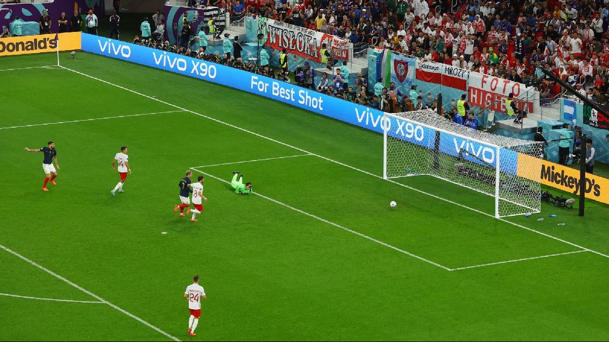 Dünya Kupası Son 16 Tipi'nde Fransa'nın Polonya ile oynadığı maçta birinci golü atan Olivier Giroud,…
