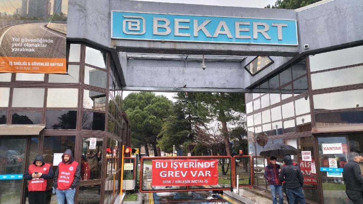 Bekaert fabrikalarında çalışan personeller, Cumhurbaşkanı kararıyla grevin yasaklanmasına karşın fabrika önünde grev çadırı kurarak aksiyon…