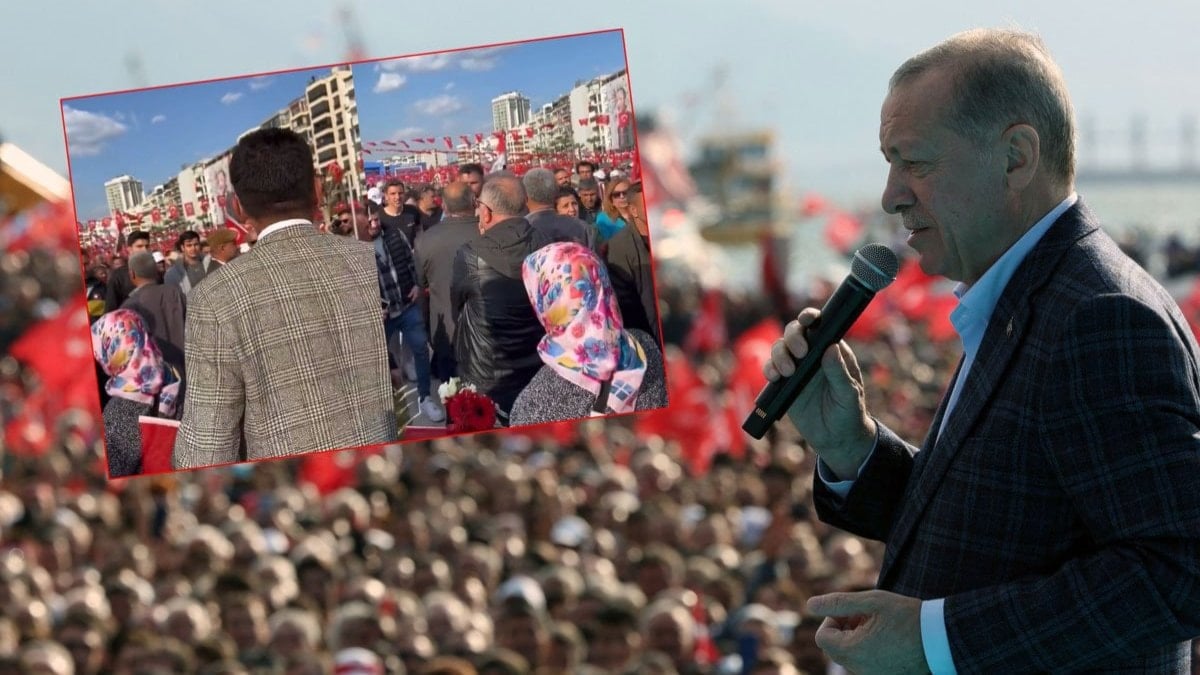 Cumhurbaşkanın Erdoğan'ın İzmir'de yaptığı miting sırasında yaşanan farklı bir an cep telefonu kameralarına yansıdı. Erdoğan'ın…