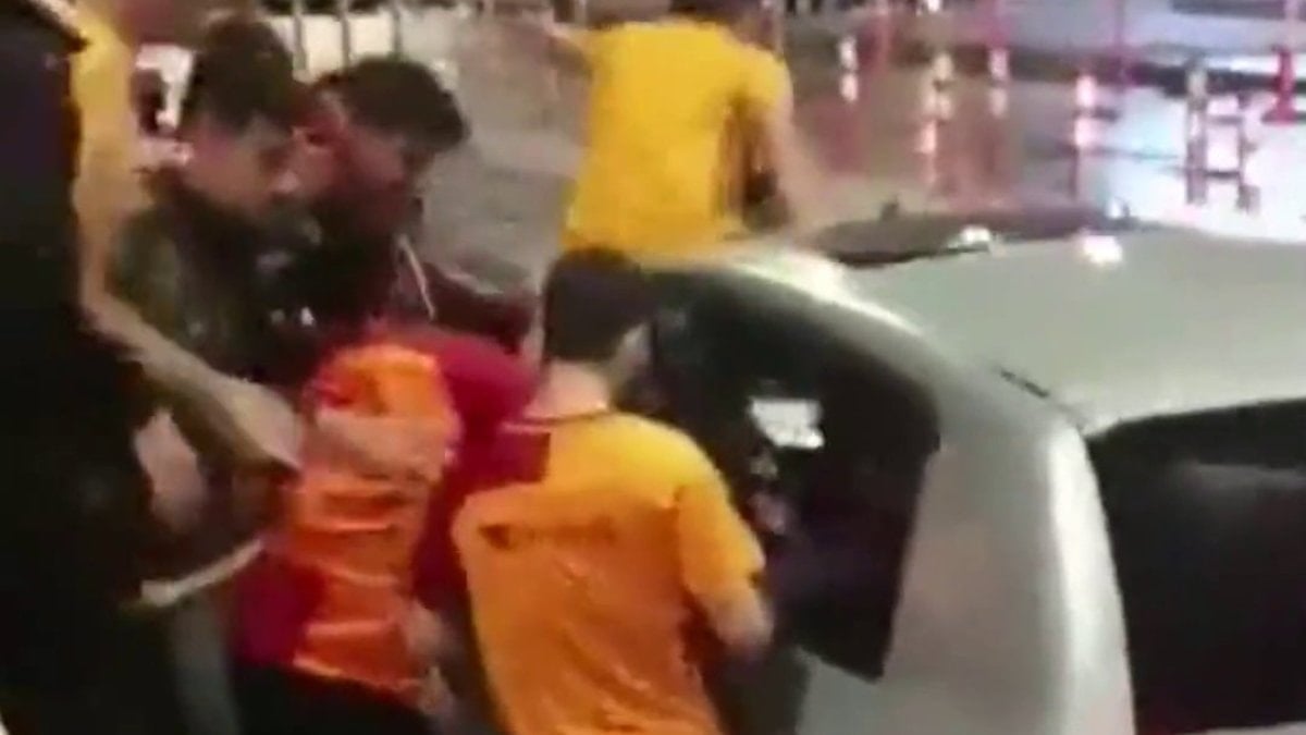 Ankaragüçlü taraftarın arabasını durdurması ile kimilerinin elinde sopalar olan Galatasaraylı taraftarlar arabaya saldırdı.