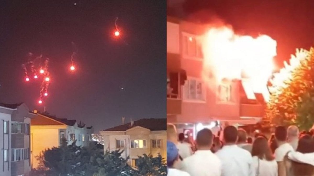 Zarar gören otomobilin sahibi Talatcan Beldek, “Festival vardı sahil tarafında. Onlar da işaret fişeği atınca arabaya ve eve sıçramış. Yanan arabanın sıcaklığıyla benim araba da yandı. Arabanın başına gelince gördüm, sağlık olsun cana gelmesin” dedi. (DHA)