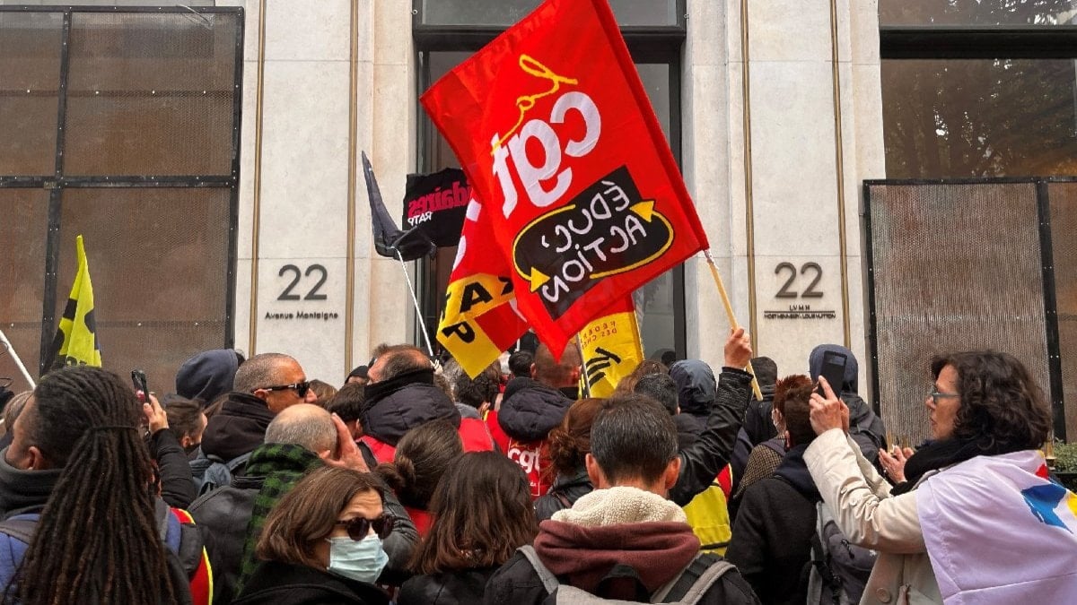 Fransa'da emekçiler emeklilik yaşının yükseltilmesi kararına karşı bugün 12. kere greve çıkarken Paris'te bir küme gösterici lüks eser kümesi LVMH'nin genel merkezine girdi.
