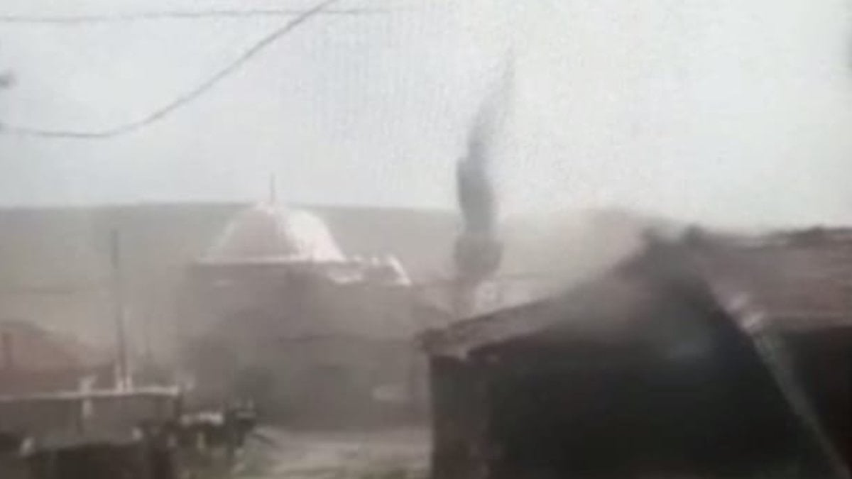 Fırtınada minarenin devrilme anı kamerada