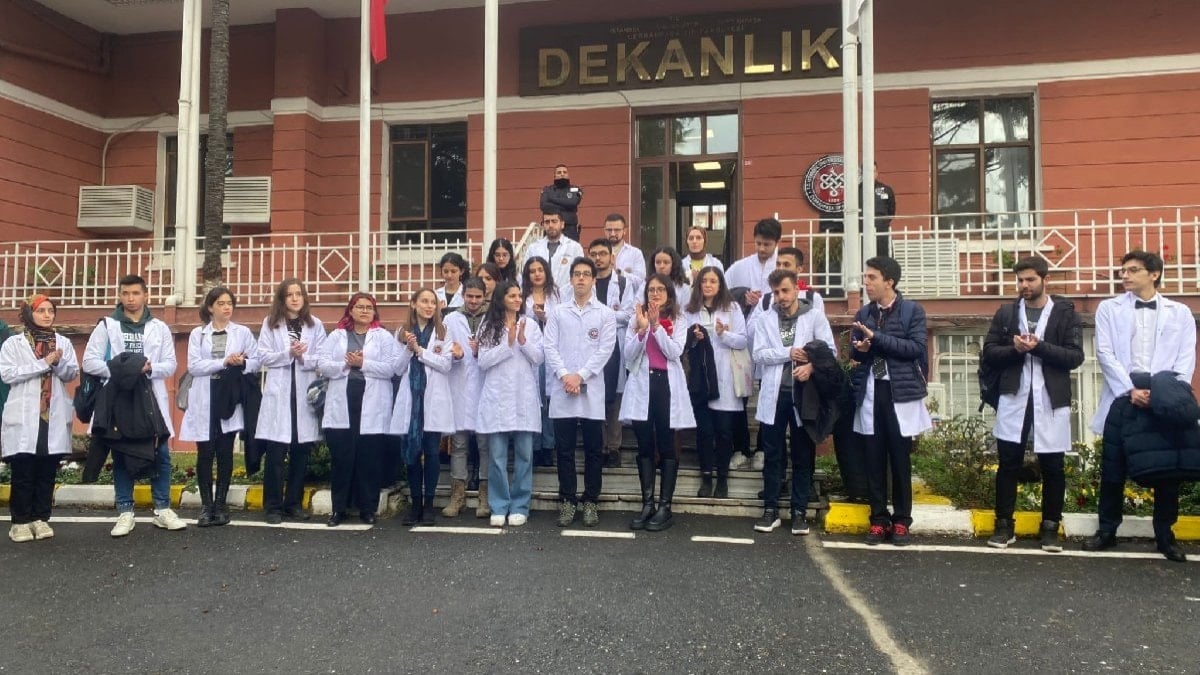İstanbul Üniversitesi Cerrahpaşa Tıp Fakültesi öğrencileri, Yükseköğretim Heyeti'nin (YÖK) üniversitelerde uzaktan eğitim kararı almasını protesto etti.