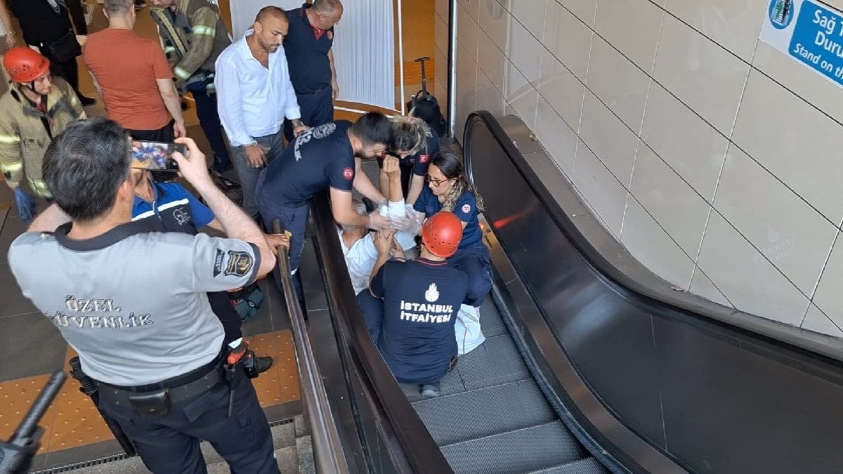 İstanbul'da Kartal metro istasyonunda dengesini kaybeden Bayram Demirci düşerek yürüyen merdivene sıkıştı.