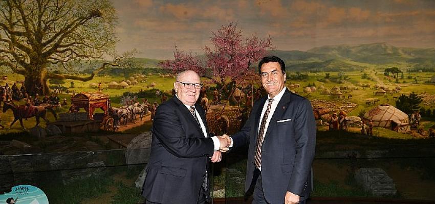 Osmangazi Belediyesi’nin kardeş belediyelerinden olan Almanya’nın Lahn Dill Kreis Belediye Başkanı Wolfgang Schuster ve beraberindeki heyet, Başkan Mustafa Dündar’ı ziyaret etti.