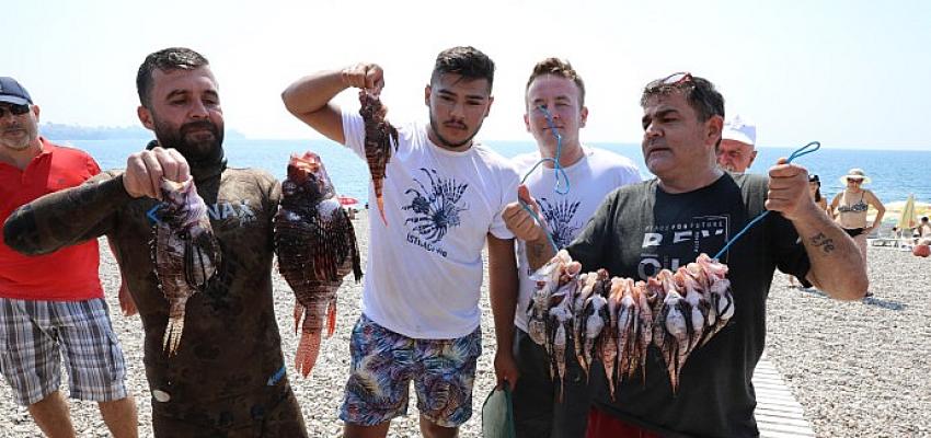 Antalya Büyükşehir Belediyesi, istilacı türlerden olan aslan balığı ile mücadele amacıyla zıpkınla aslan balığı yakalama yarışması ve tadım etkinliği düzenledi.
