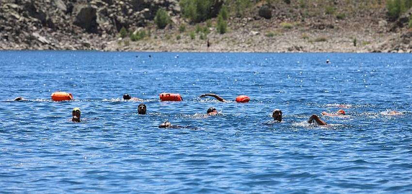 Van Büyükşehir Belediyesince bu yıl ilki düzenlenen "Van Denizi Yüzme Festivali’nin son gününde profesyonel yüzücüler, Türkiye’nin en büyük krater gölü olan Nemrut Krater Gölünün serin sularında yüzdü.