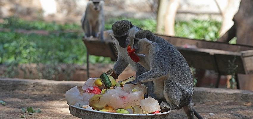 Antalya Büyükşehir Belediyesi Doğal Yaşam Parkı’nın sevimli sakinleri, buzlu meyve kokteylleri ve fıskiyeler ile bunaltıcı yaz sıcaklarında serinletiliyor.