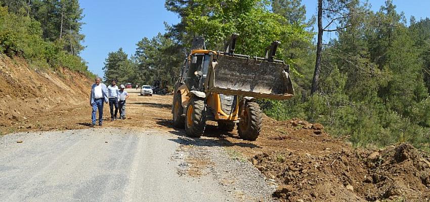 Antalya Büyükşehir Belediyesi Manavgat ilçesine bağlı Çavuşköy, Uzunlar, Halitağalar ve Çamlıtepe mahalleleri grup yolunda asfalt öncesi hazırlık çalışmaları yapıyor.