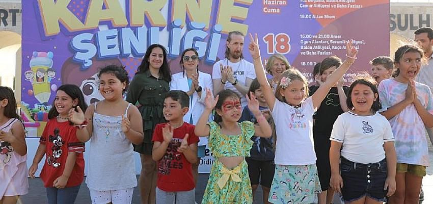 Didim Belediyesi tarafından ilçede yaşayan öğrencilere yönelik düzenlenen karne şenliğinde çocuklar doyasıya eğlendi.