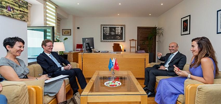 İzmir Büyükşehir Belediye Başkanı Tunç Soyer, Avrupa Birliği Türkiye Delegasyonu Başkanı Büyükelçi Nikolaus Meyer-Landrut ve beraberindeki heyeti makamında ağırladı.
