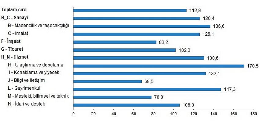 Toplam ciro yıllık 112,9 arttı