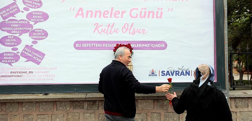 Nevşehir Belediyesi tarafından Anneler Günü dolayısıyla hazırlanan billboardlara anneler için canlı çiçekler bırakıldı.