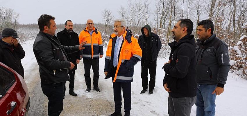 Nilüfer Belediyesi karla mücadele ekipleri, kentte etkili olan kar yağışının ulaşımı olumsuz etkilememesi için aralıksız çalışırken, Nilüfer Belediye Başkanı Turgay Erdem de ekiplerin çalışmasını yerinde takip etti.